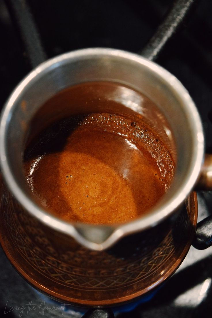 Cezveyi ocağa yerleştirin ve kısık ateşte ısıtın. Kahve ve suyun köpürtüp karışmasını bekleyin.